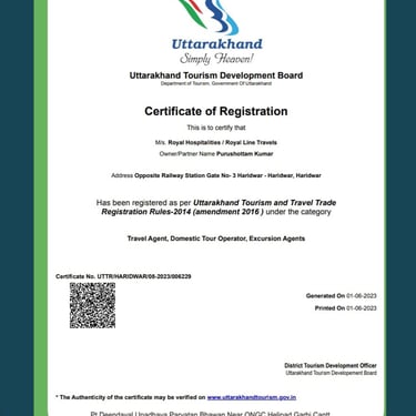Whether you're planning a religious pilgrimage or a leisure trip, our team of expert Travels agents in Haridwar ensures personalized services, reliable transportation, and well-organized itineraries. As top-rated Uttarakhand tour operators, Royal lines Travels is committed to delivering unmatched travel experiences at affordable prices.